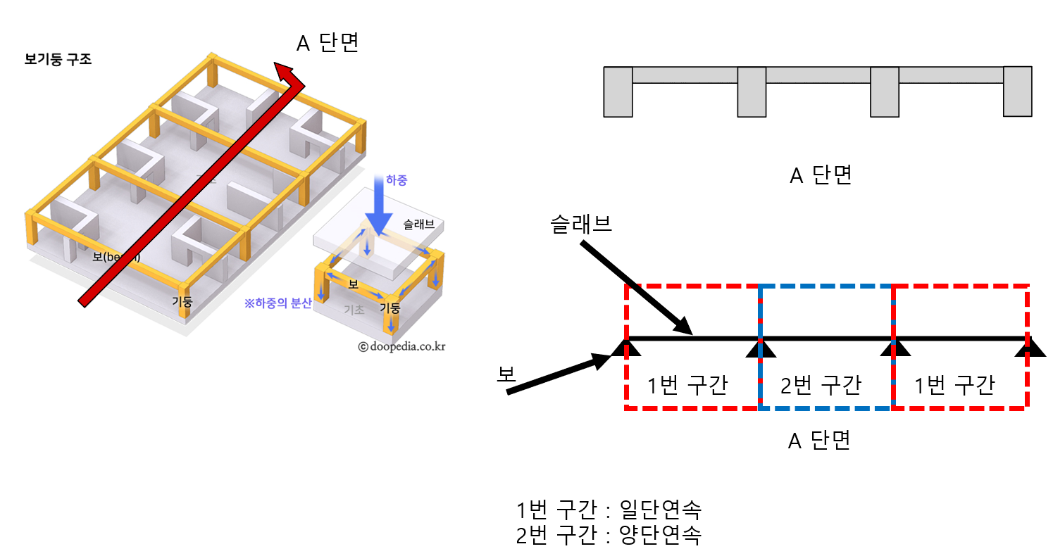 ※ 설명을 위해 단면을 2단연속보로 표현했는데, 일단연속보의 경우 아래 그림을 참고해주시면 됩니다.