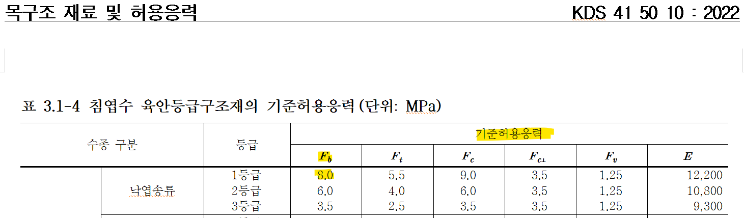 [목구조의 기준허용응력을 예시로 들었지만 목구조기준을 읽다보니 목재 재료가 가지고 있는 변수들이 다양하기 때문에 기준허용응력에 보정계수가 곱해지는 것을 확인했습니다. 기준대로 하면 보정계수를 곱해야하지만 이 부분은 생략했습니다 ㅠㅠ]