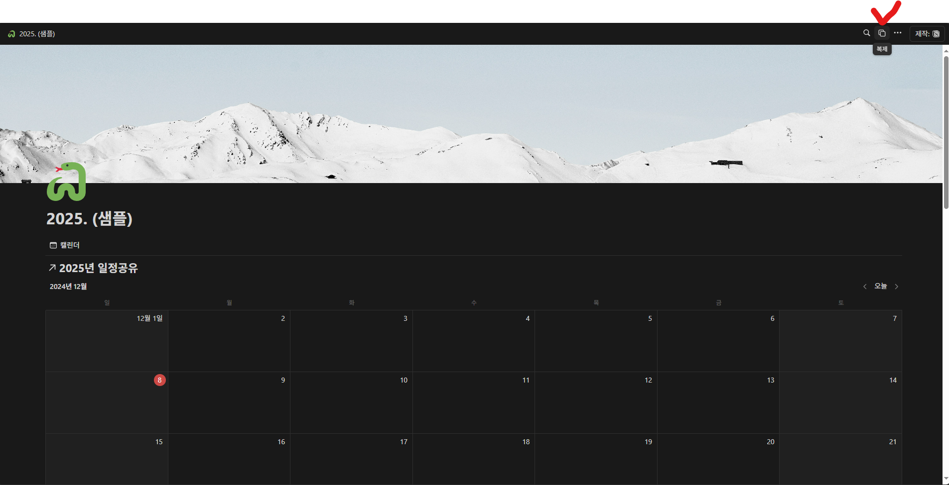 2. 노션 캘린더, 월계획표 복사 방법