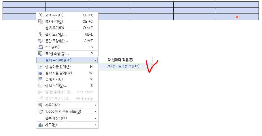 4. 표 배경 및 테두리 변경 단축키